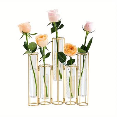 Gold 5 Test Tube Vase with Stand for Wedding and Home Decoration