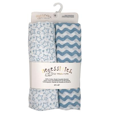 Baby Stars and Waves 2 Pack Muslin Swaddle Blankets
