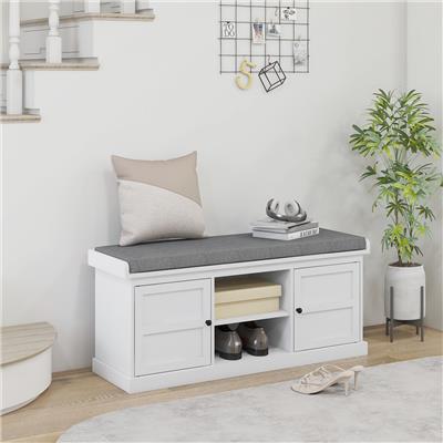 HOMCOM White Shoe Storage Bench with Padded Seat, 2 Cabinets and Adjustable Shelf